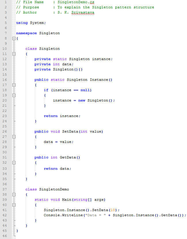 multiple products. This article Singleton Design Pattern In C# is from his Design Patterns course.