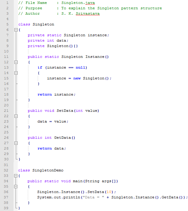 multiple products. This article Singleton Design Pattern In Java is from his Design Patterns course.