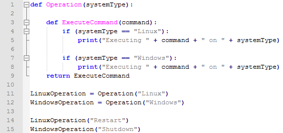 We can have a function works as a factory which creates and returns function. We can return different functions based on parameter of function. As we have a function inside another function so closure is created and inner function will have access to factory function parameter even after it returns. This provides great flexibility for creation of functions. Let's see the implementation of factory function in python.
